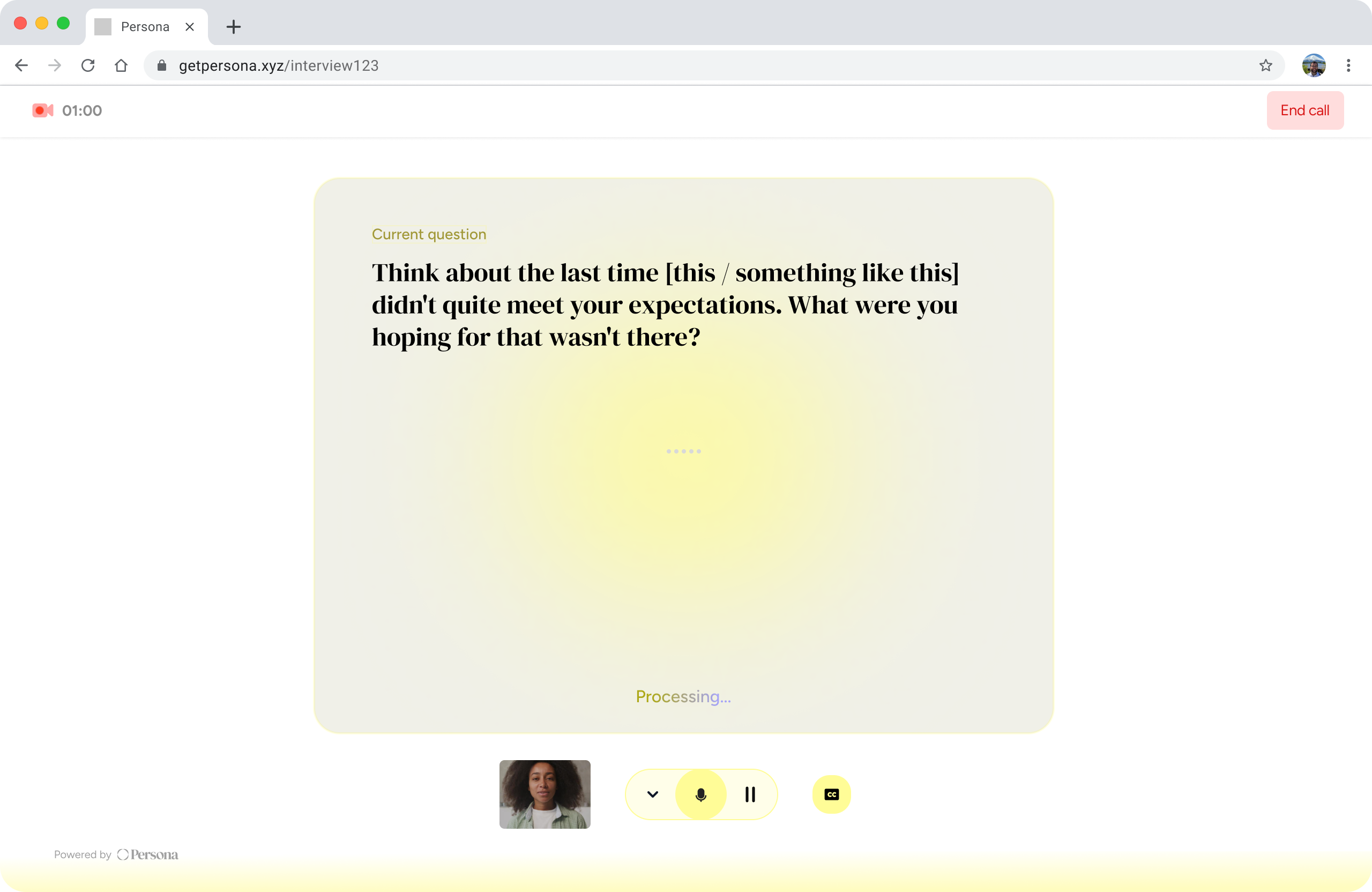 Persona runs AI-moderated interviews at scale, turning a research brief into structured insights in 48 hours.